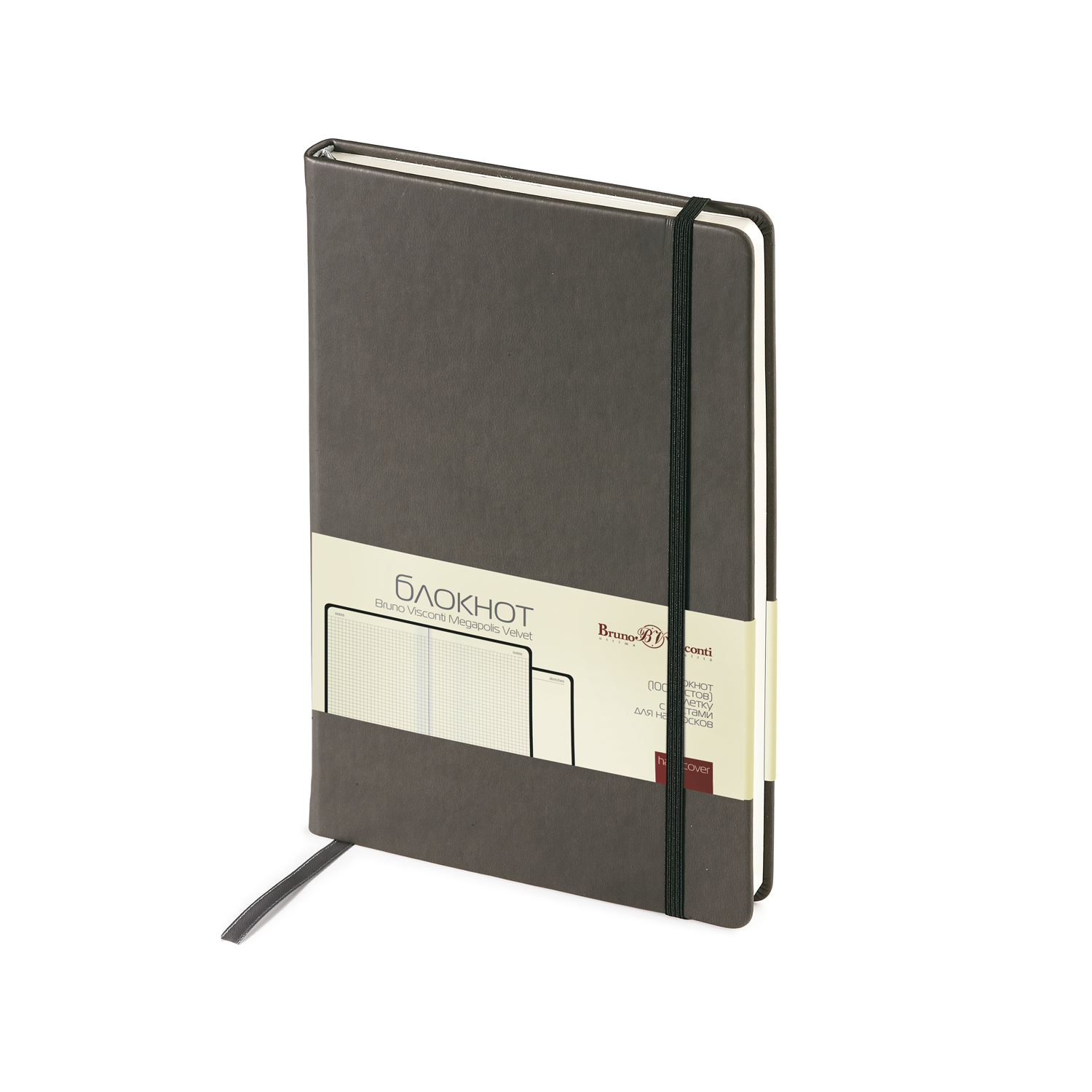 БЛОКНОТ А5 100 Л "MEGAPOLIS VELVET" НА РЕЗИНКЕ (СЕРЫЙ)