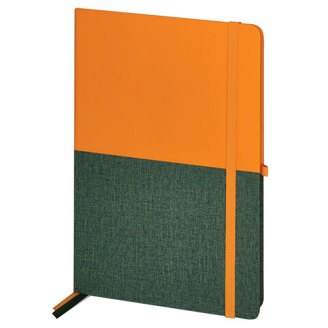 Блокнот А5 (148х218 мм), BRAUBERG "DUO" под кожу с резинкой, 80 л., клетка, оранжевый/зеленый, 113435