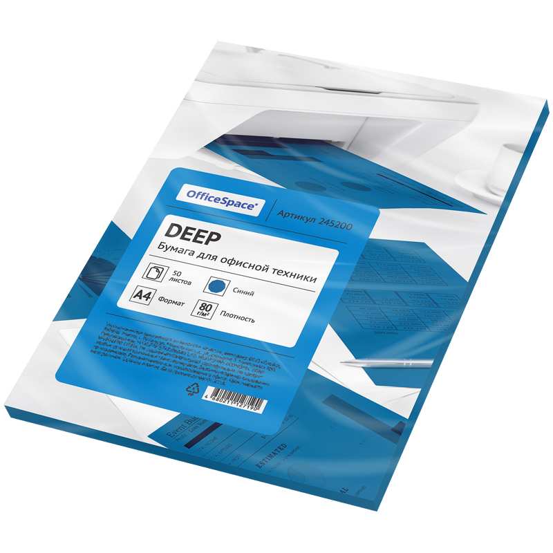 Цветная бумага формата А4, плотность 80 г/м2, цвет deep синий, 50 листов, упаковка - пакет с клеевой полосой.