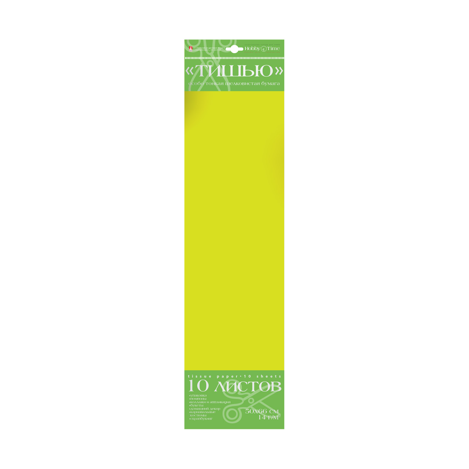 БУМАГА "ТИШЬЮ", 10 ЛИСТОВ, САЛАТОВЫЙ