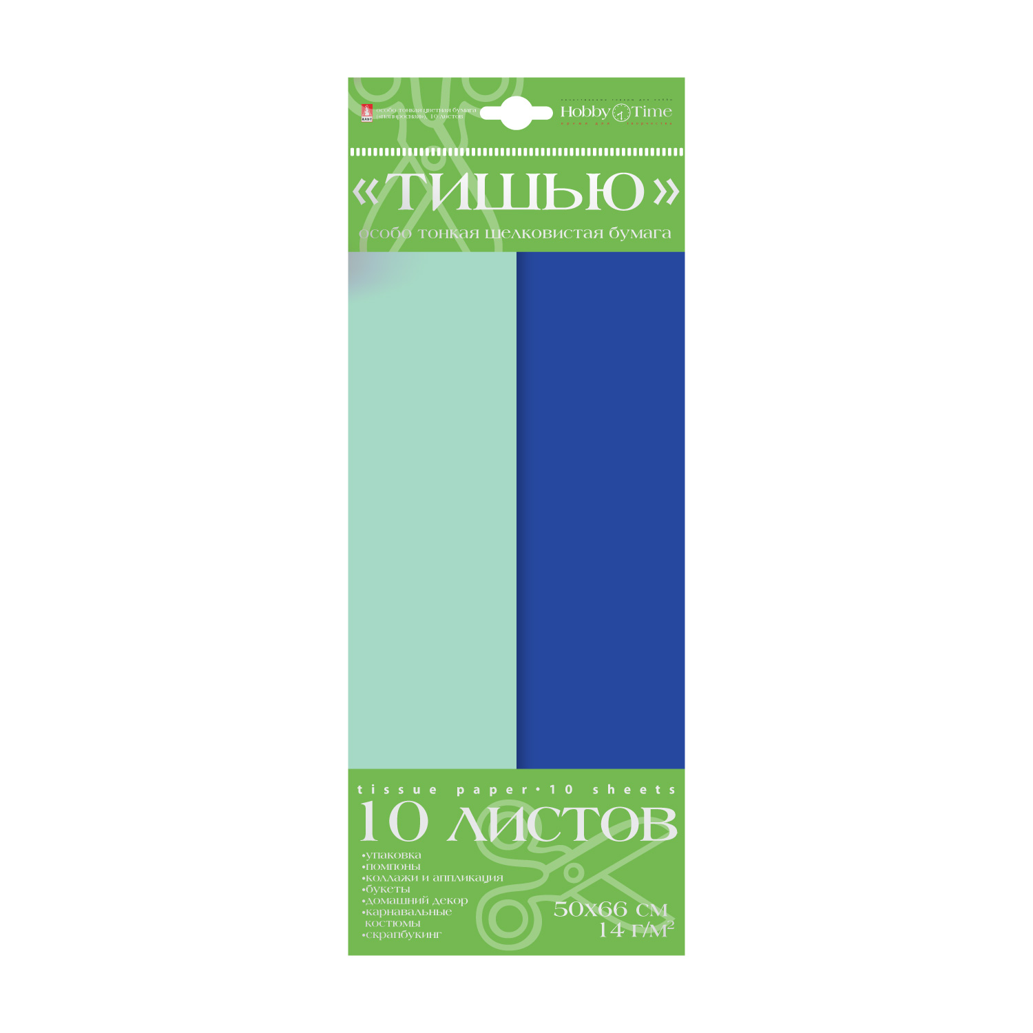 БУМАГА "ТИШЬЮ", 10 ЛИСТОВ, СИНИЙ / МЯТНЫЙ