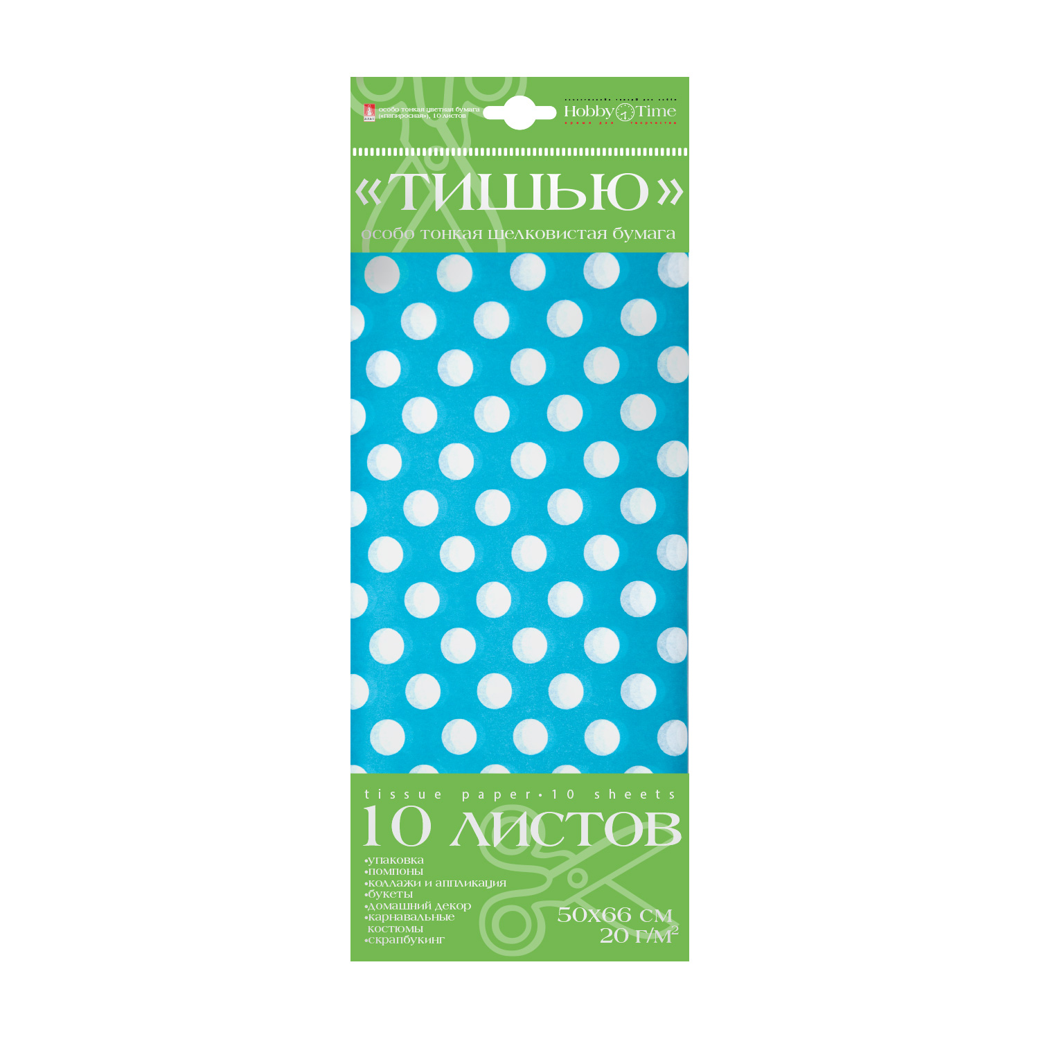 БУМАГА С ОРНАМЕНТОМ "ТИШЬЮ", 10 ЛИСТОВ, "ГОРОШЕК. ГОЛУБОЙ ФОН."