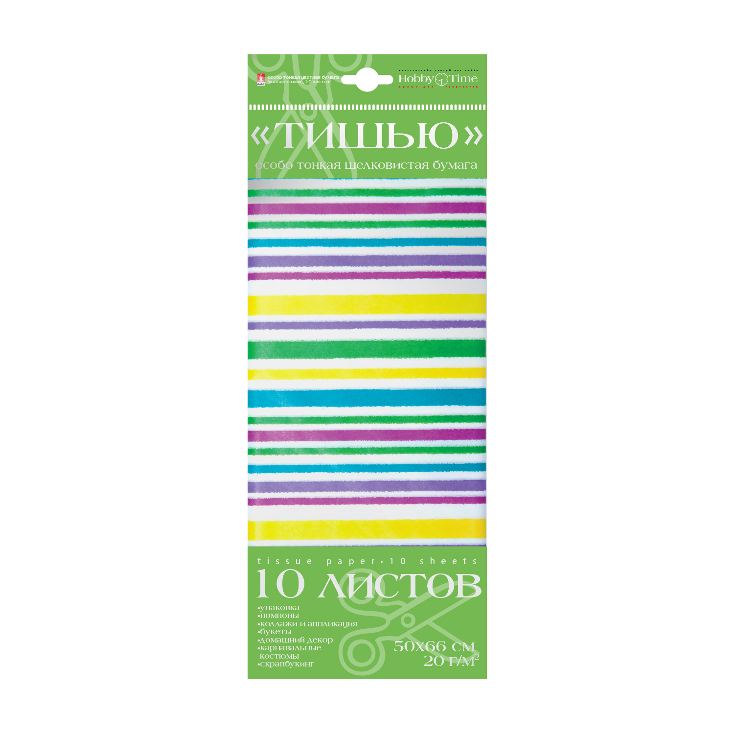 БУМАГА С ОРНАМЕНТОМ "ТИШЬЮ", 10 ЛИСТОВ, "ПОЛОСКА"