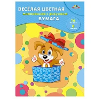 Бумага цветная мелованная двусторонняя, А4, 16 л., 8 цв., "Веселый щенок"