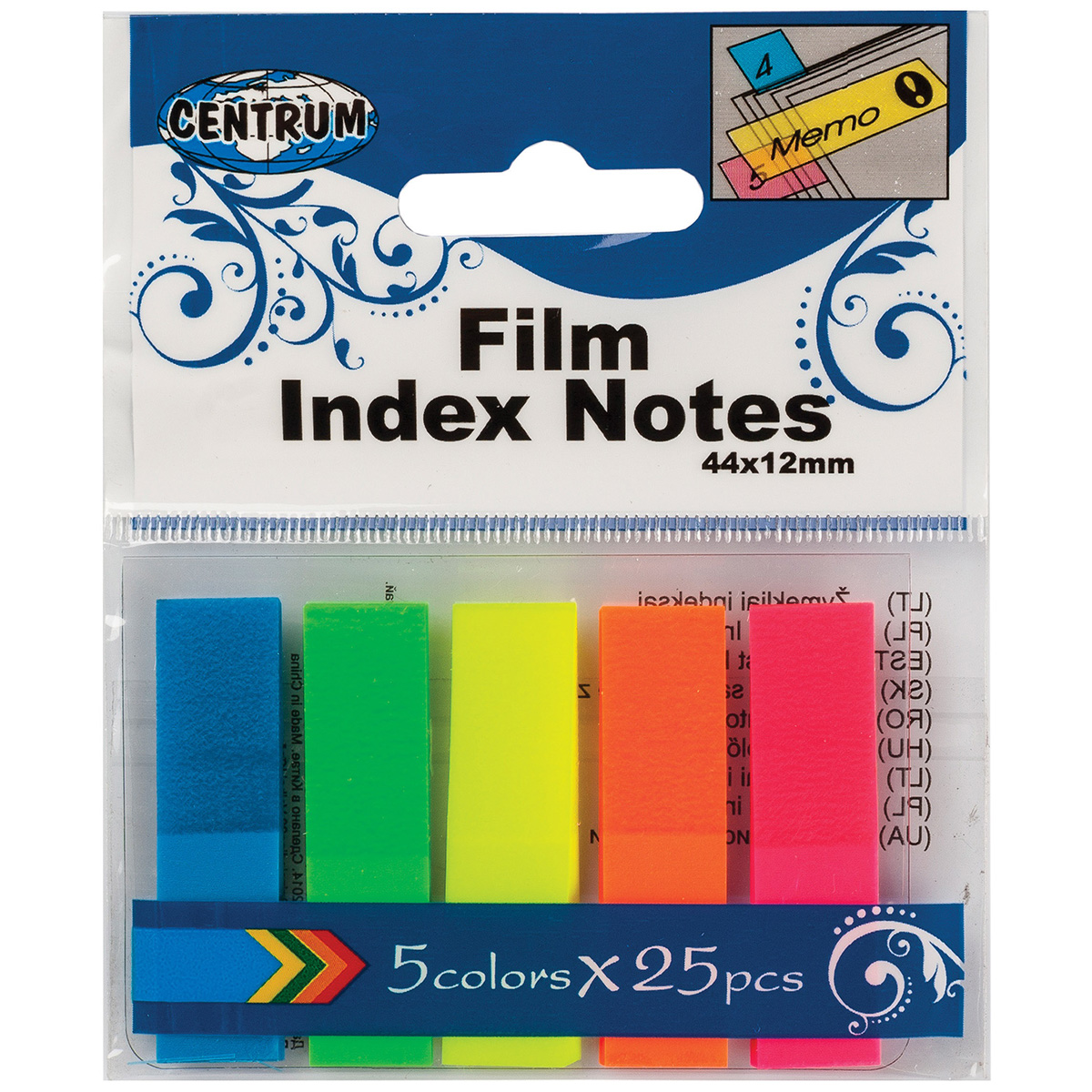 80408 Клейкие листки-индексы пластиковые 5 цветов по 25 листов, 45х12 мм Клейкие листки - индексы Centrum позволят быстро выделить нужную информацию на любом бумажном носителе или использовать их в качестве пометок и указателей. Могут использоваться для нанесения надписей. Индексы представляют собой пластиковые листки небольшого размера с клеевым краем. Предназначенные для маркировки любой поверхности, они не оставляют следов клея после удаления, а также подходят для многократного переклеивания. В наборе 5 разноцветных блоков по 25 листов. Размер блока: 45*12 мм.