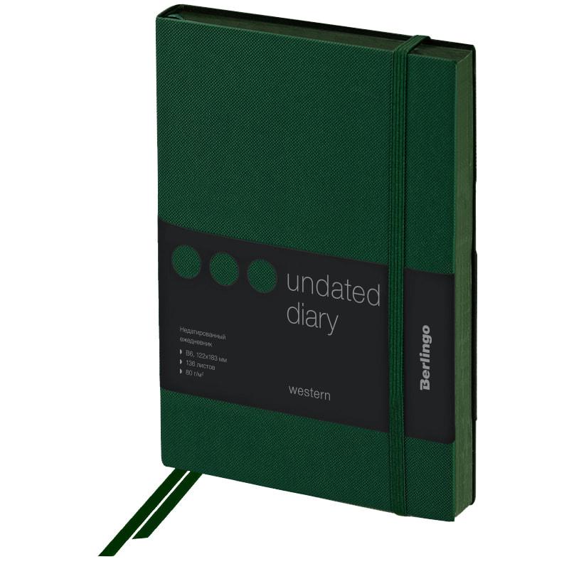 Ежедневник недатированный, B6, 136л., кожзам, Berlingo "Western", с резинкой, зеленый. UD0_85604