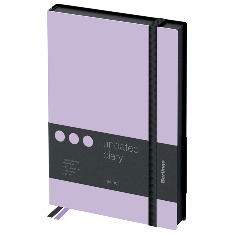 Ежедневники Berlingo Instinct изготовлены из матовой искусственной кожи c эффектом soft-touch. Сочетание двух контрастных цветов обложки: пастельного фиолетового и черного. Полужесткая обложка с прострочкой по корешку. Черный срез блока. Вертикальная черная фиксирующая резинка увеличенной ширины 9мм. Запечатанные форзацы. Внутренний блок из 136 листов высококачественной кремовой бумаги повышенной плотности 80 г/м?, пантонная печать в 2 краски, справочный материал и перфорированные уголки. Индивидуальная упаковка. Подходят под персонализацию: трафаретная печать, УФ-печать, тиснение фольгой, блинтовое тиснение, лазерная гравировка, шильд.
