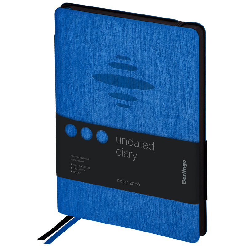 Ежедневник недатир. A5, 136л., кожзам, Berlingo "Color Zone", черн. срез, с резинкой, синий