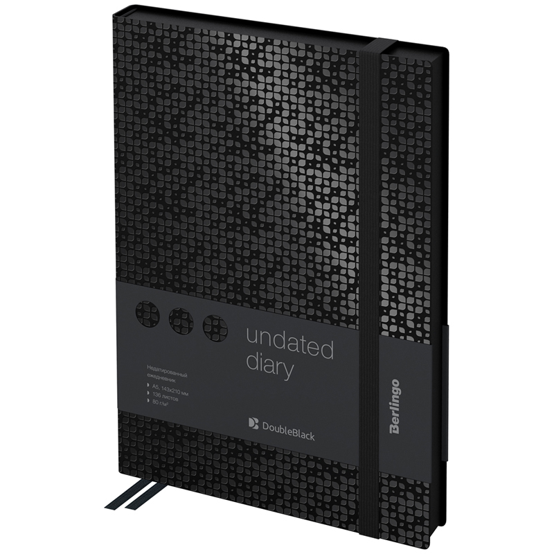 Ежедневник недатированный, A5, 136л., кожзам, Berlingo "DoubleBlack", черный срез, черный, с рисунком