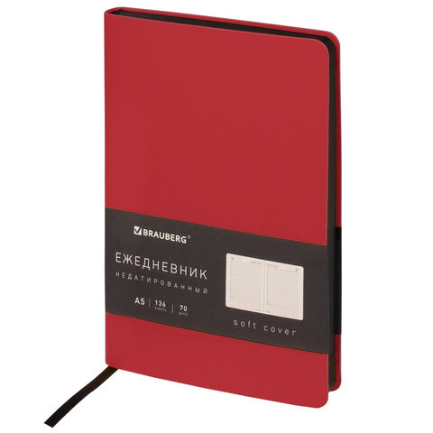 Ежедневник недатированный А5 138х213 мм BRAUBERG "Metropolis Mix", под кожу, 136 л, красный, 113293