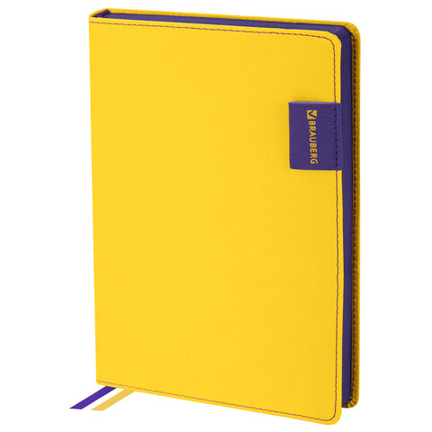Ежедневник недатированный А5 (138х213 мм), BRAUBERG "AIM", под кожу, 136 л., желтый, 113418