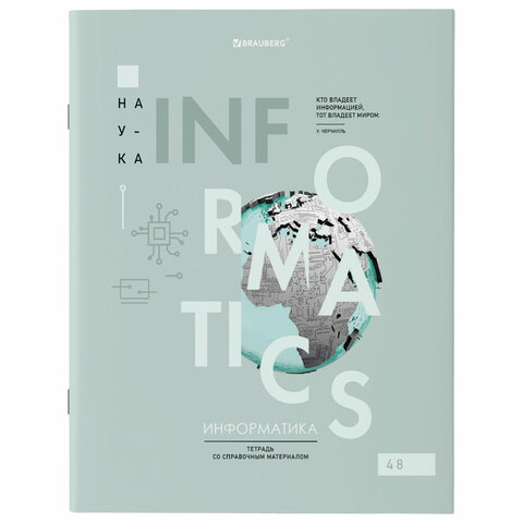 Тетрадь предметная со справочным материалом VISION 48 л., обложка картон, ИНФОРМАТИКА, клетка, BRAUBERG, 404255