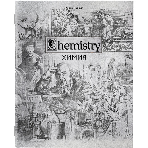 Тетрадь предметная "SILVER" 48 л., металлизированный картон, ХИМИЯ, клетка, подсказ, BRAUBERG, 404023