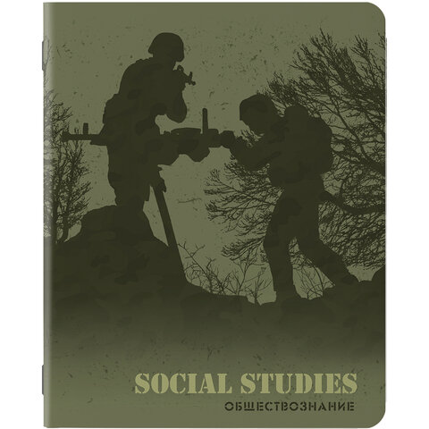 Тетрадь предметная MILITARY 48 л., SoftTouch, 70 г/м2, ОБЩЕСТВОЗНАНИЕ, клетка, подсказ, BRAUBERG, 404003