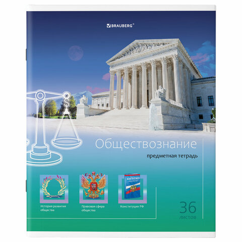 Тетрадь предметная "ЯРКАЯ", 36 л., обложка мелованная бумага, ОБЩЕСТВОЗНАНИЕ, клетка, BRAUBERG, 404225