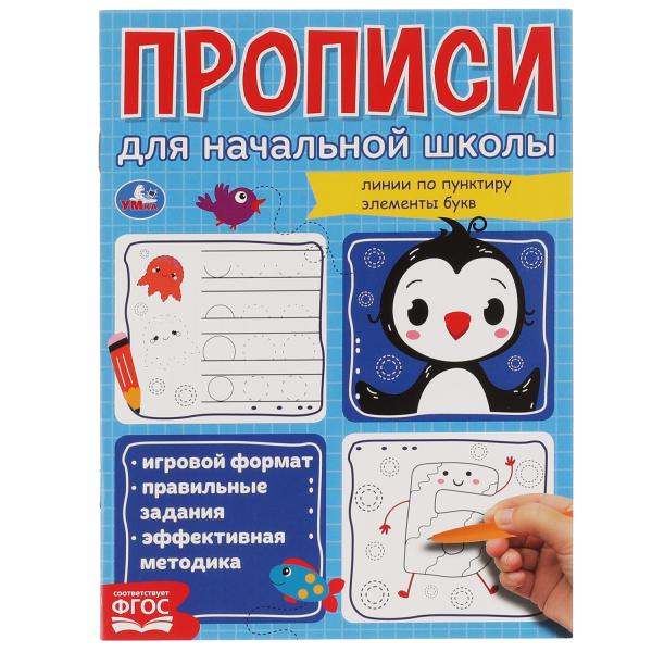 Линии по пунктиру. Элементы букв. Прописи для начальной школы. 145х195 мм. 16 стр. Умка