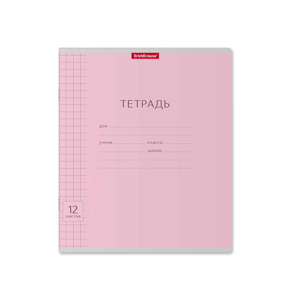 Тетрадь школьная ученическая Erich Krause Классика с линовкой розовая, 12 листов, крупная клетка (в плёнке по 10 шт.)