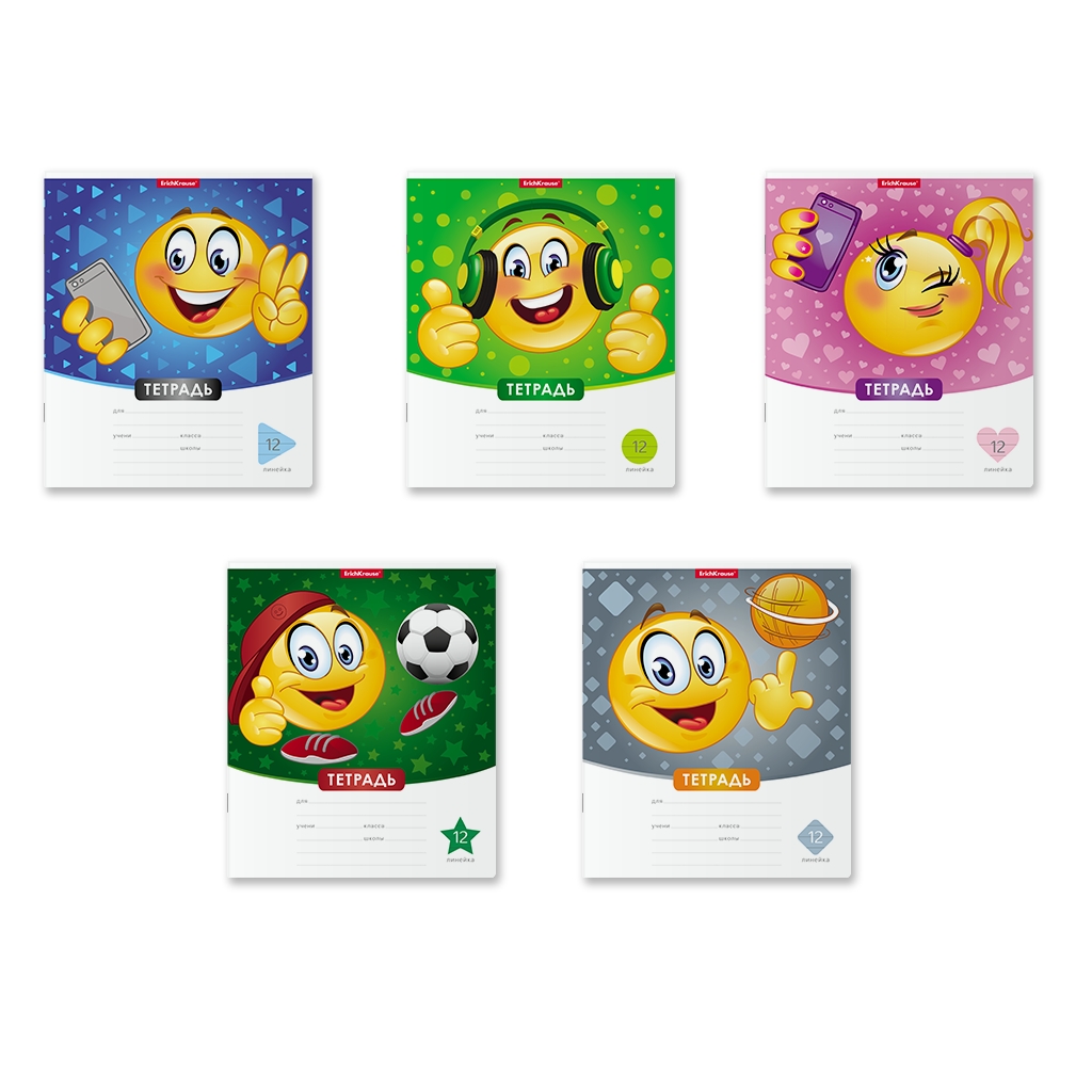 Тетрадь школьная ученическая Erich Krause Смайлики, 12 листов, линейка (в плёнке по 10 шт.)