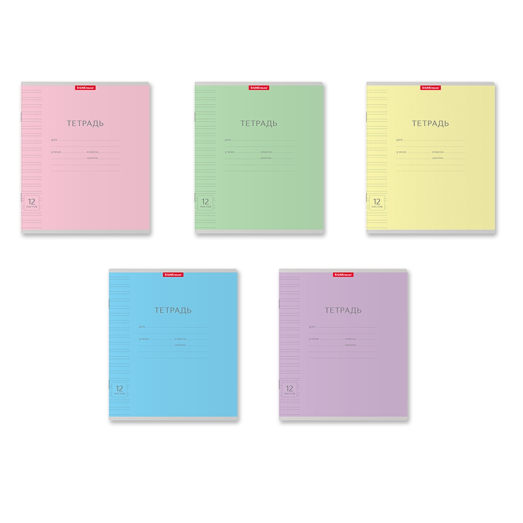 Тетрадь школьная ученическая Erich Krause Классика с линовкой ассорти, 12 листов, узкая линейка (в плёнке по 10 шт.)