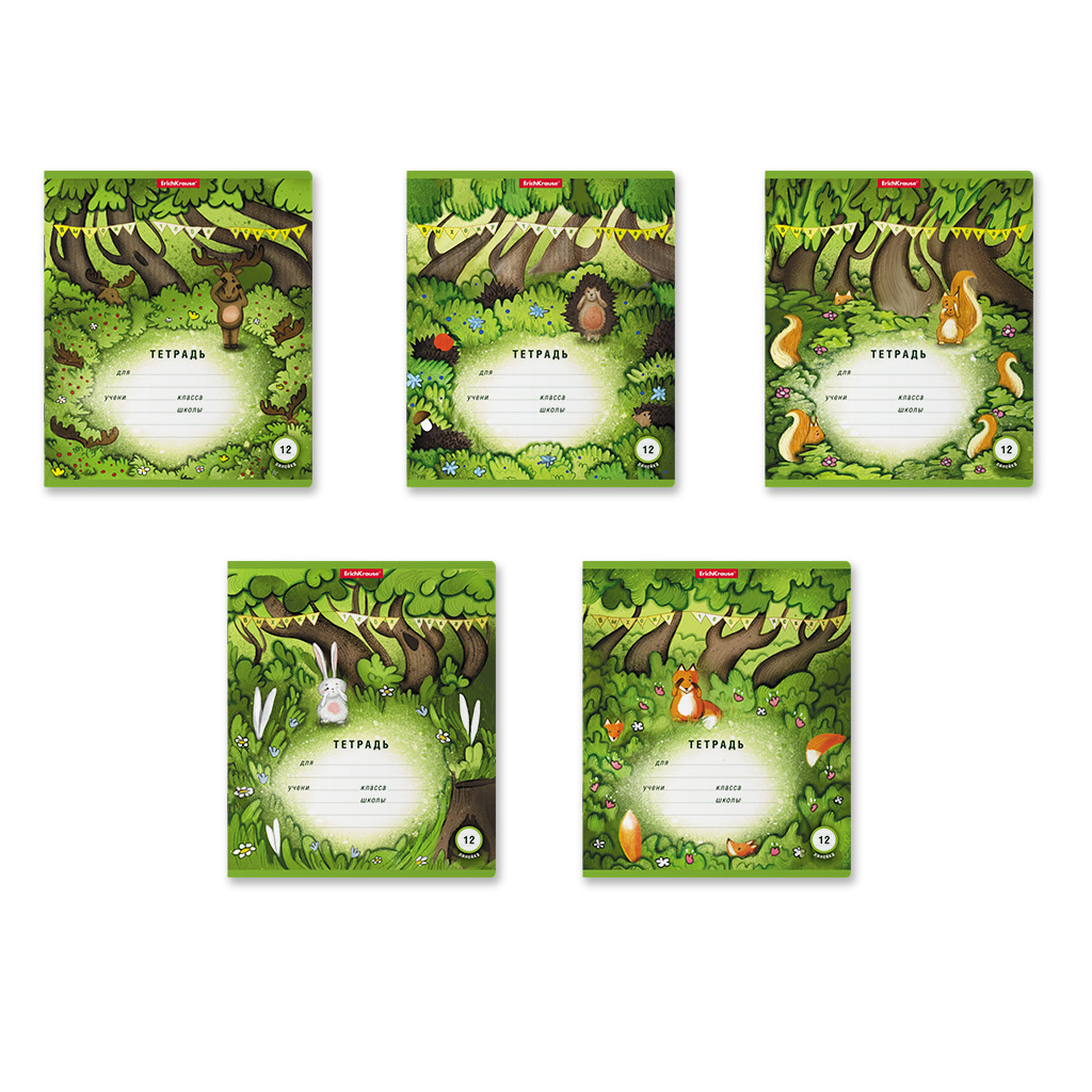 Тетрадь школьная ученическая Erich Krause Прятки, 12 листов, линейка (в плёнке по 10 шт.)