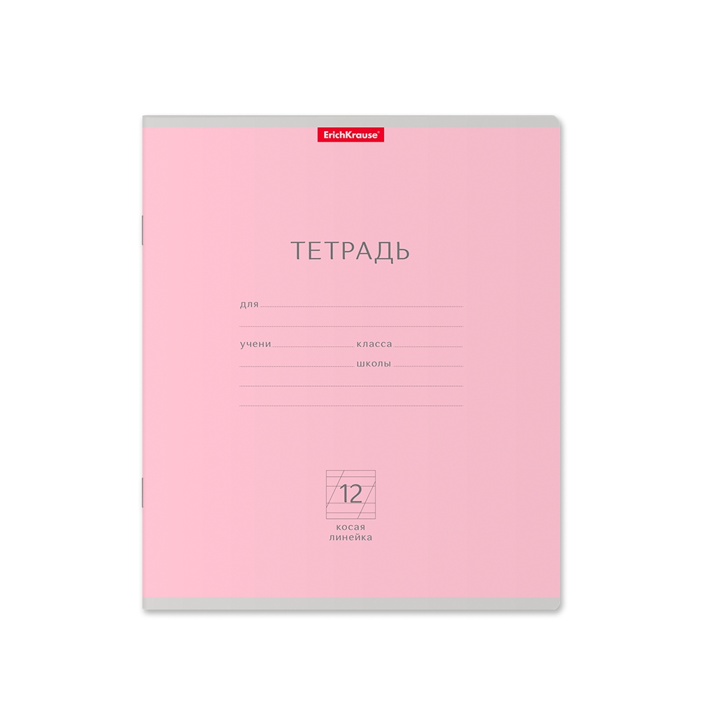 Тетрадь школьная ученическая ErichKrause® Классика розовая, 12 листов, косая линейка (в плёнке по 10 шт.)