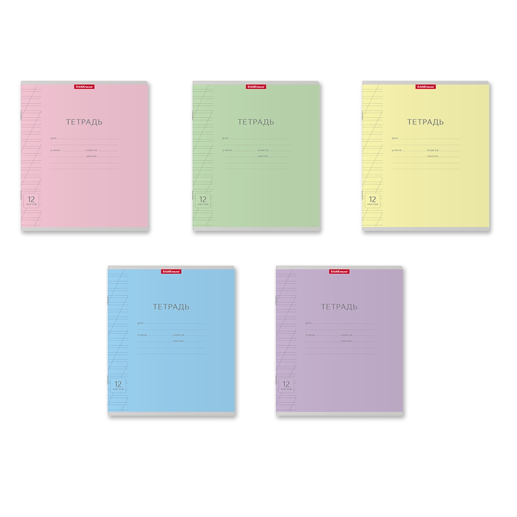 Тетрадь школьная ученическая ErichKrause® Классика с линовкой ассорти, 12 листов, косая линейка (в плёнке по 10 шт.)