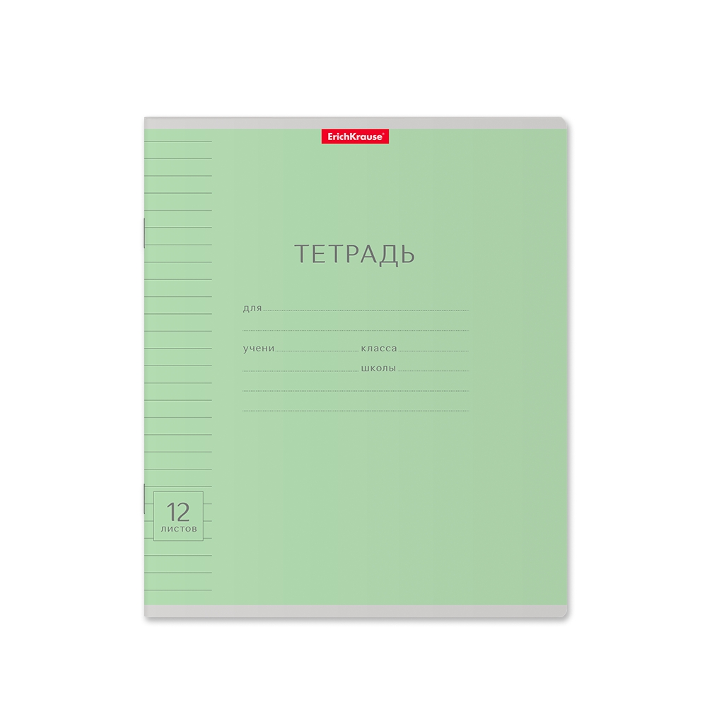 Тетрадь школьная ученическая ErichKrause® Классика с линовкой зеленая, 12 листов, линейка (в плёнке по 10 шт.)