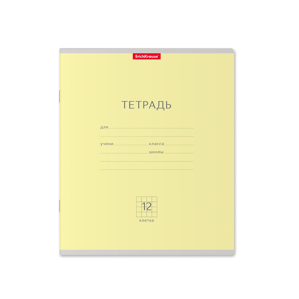 Тетрадь школьная ученическая Erich Krause® Классика желтая, 12 листов, клетка (в плёнке по 10 шт.)