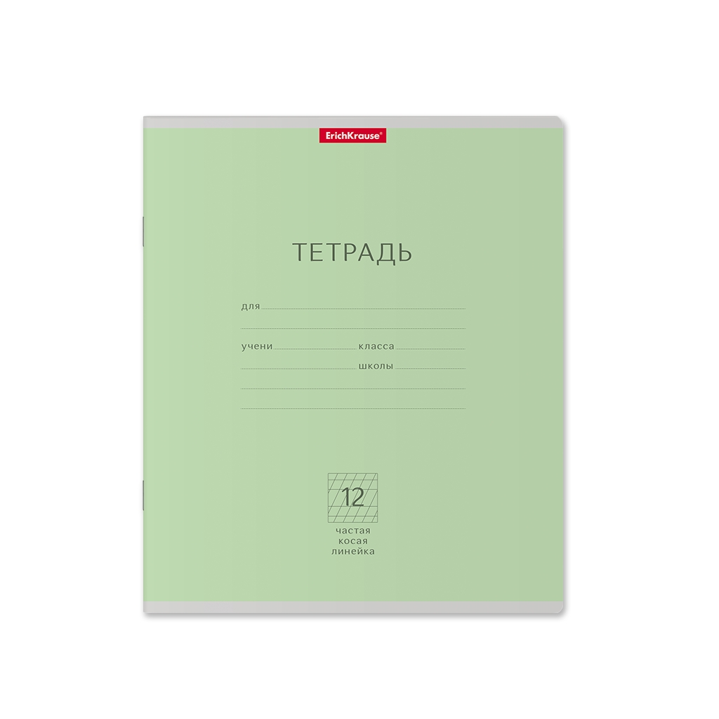 Тетрадь школьная ученическая Erich Krause® Классика зеленая, 12 листов, частая косая линейка (в плёнке по 10 шт.)