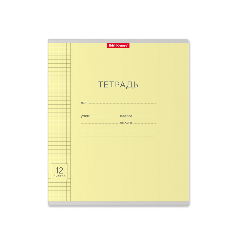 Тетрадь школьная ученическая Erich Krause® Классика с линовкой желтая, 12 листов, клетка (в плёнке по 10 шт.)