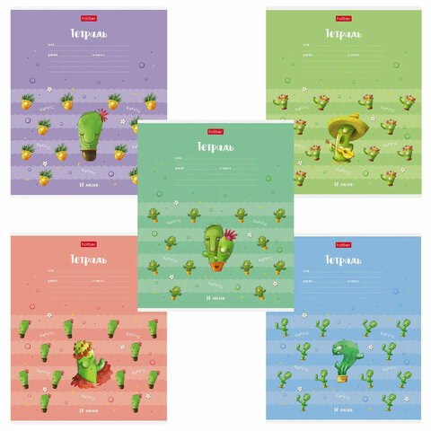 Тетрадь 12 л. HATBER клетка, обложка картон, "Мой друг Кактус" (5 видов в спайке) 12Т5В1