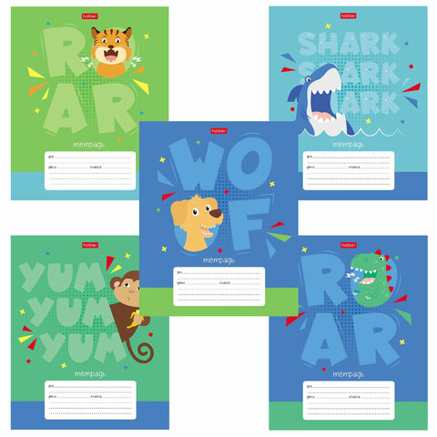 Тетрадь 12 л. HATBER клетка, обложка картон, "Ррррычалки" (5 видов в спайке) 12Т5В1