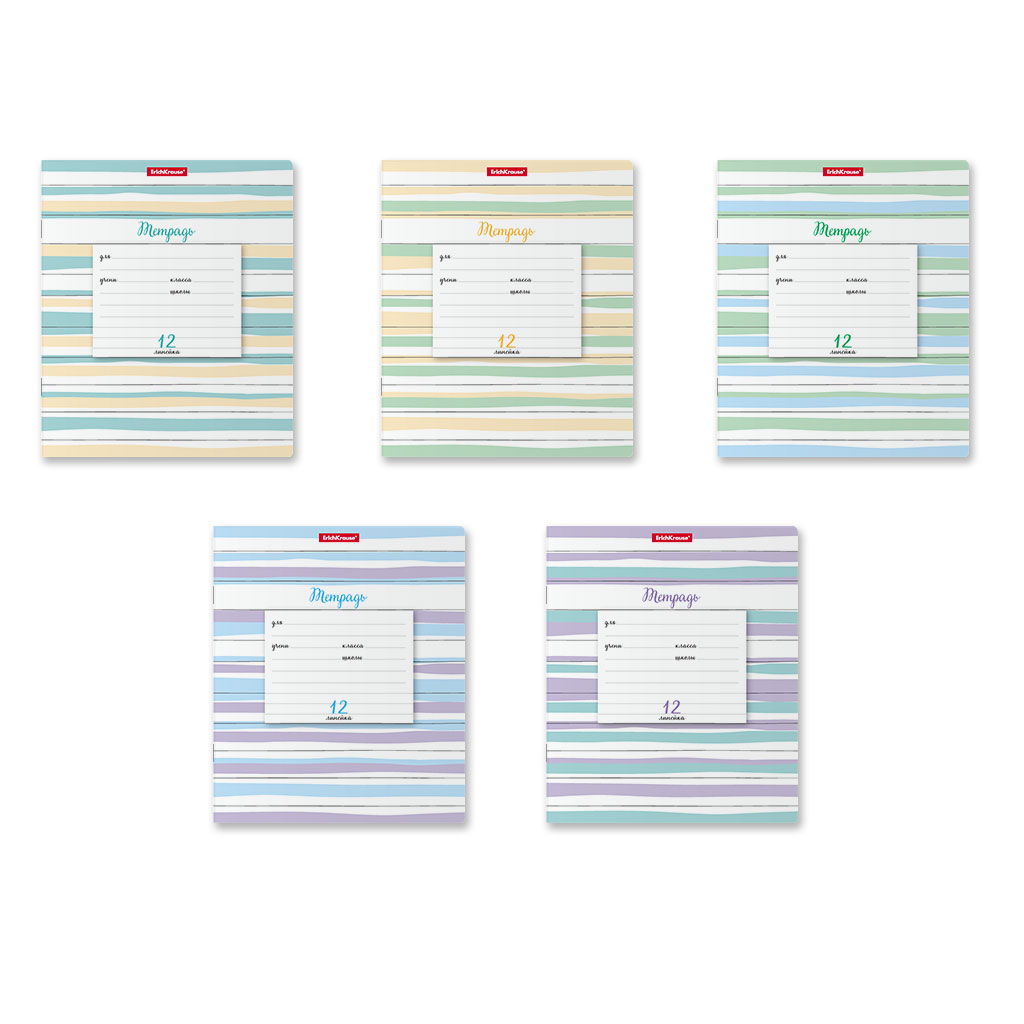 Тетрадь школьная ученическая ErichKrause® Optima Lines ассорти, 12 листов, линейка (в плёнке по 10 штук) MIX-PACK