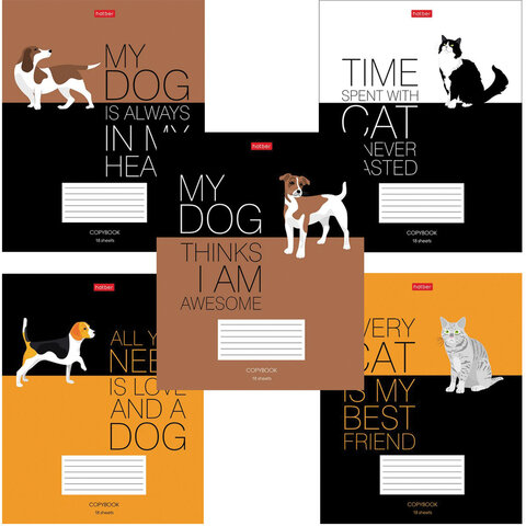 Тетрадь 18 л. HATBER клетка, обложка картон, "Умные звери" (5 видов в спайке), 18Т5В1