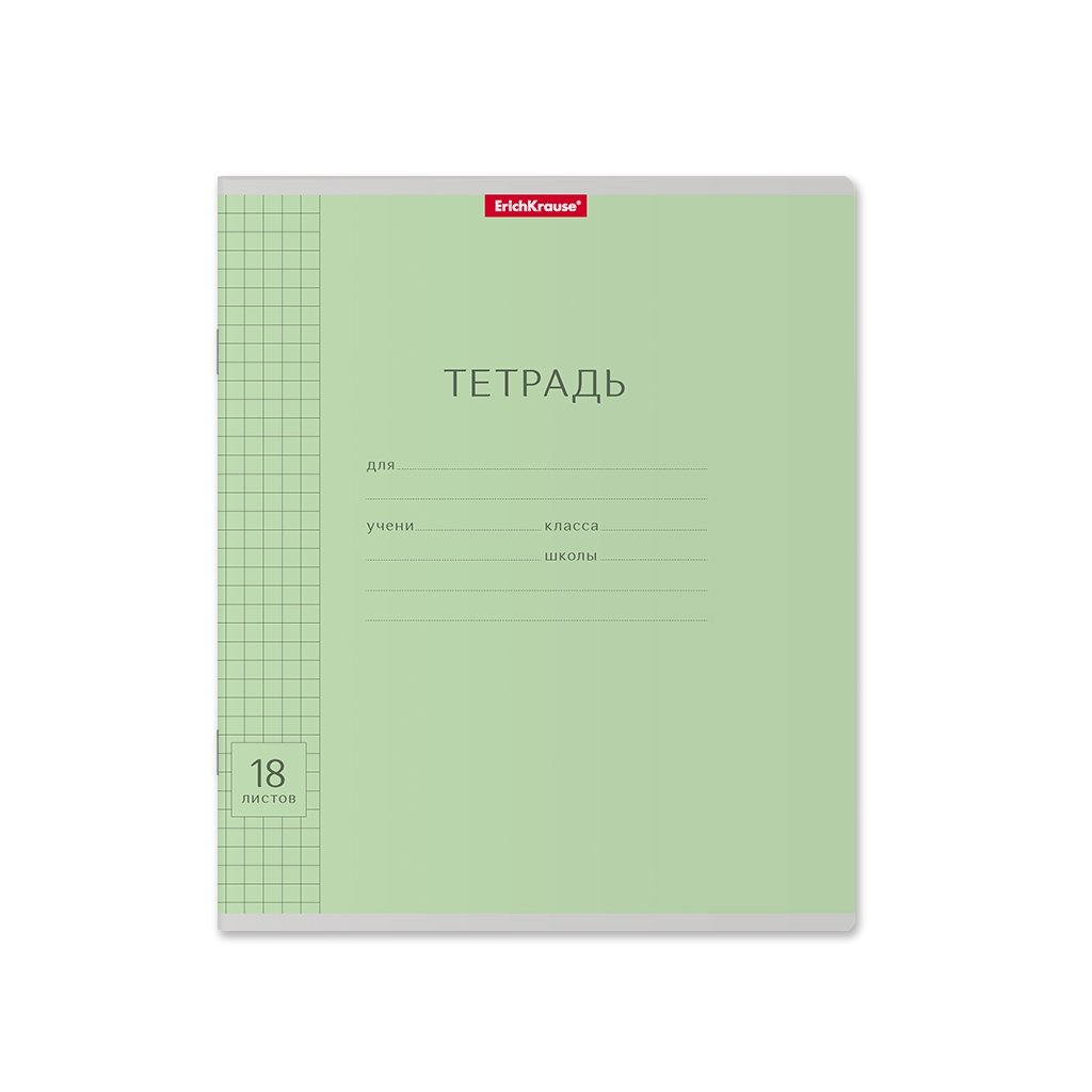 Тетрадь школьная ученическая Erich Krause Классика с линовкой зеленая, 18 листов, клетка (в плёнке по 10 шт.)