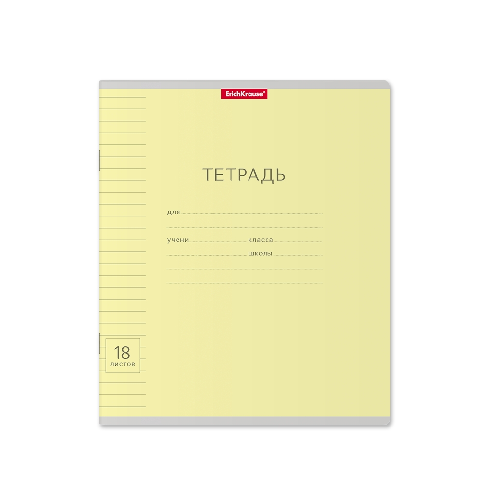 Тетрадь школьная ученическая ErichKrause® Классика с линовкой желтая, 18 листов, линейка (в плёнке по 10 шт.)