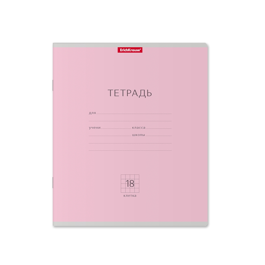 Тетрадь школьная ученическая Erich Krause® Классика розовая, 18 листов, клетка (в плёнке по 10 шт.)