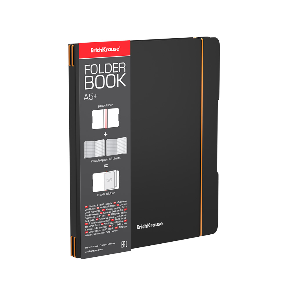 Тетрадь общая ученическая в съемной пластиковой обложке Erich Krause FolderBook Accent, оранжевый, А5+, 2x48 листов, клетка