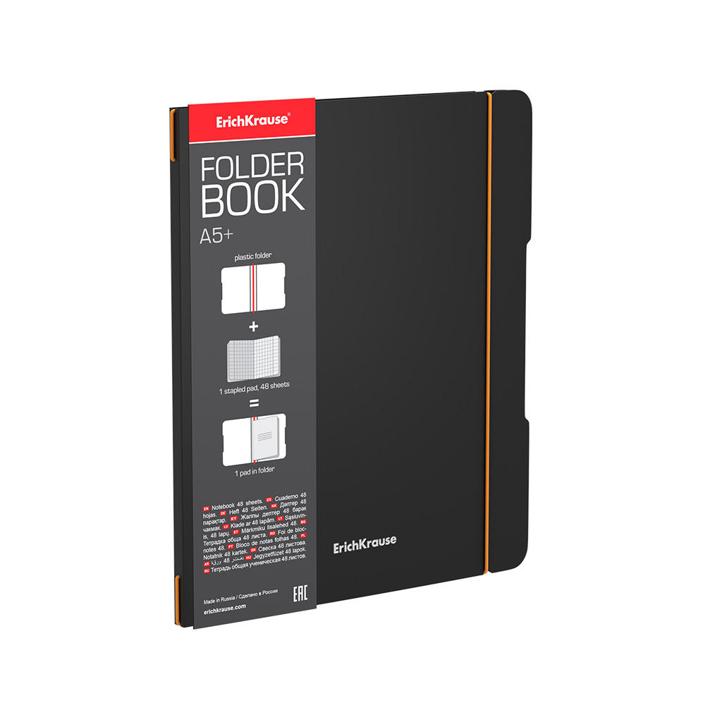 Тетрадь общая ученическая в съемной пластиковой обложке Erich Krause FolderBook Accent, оранжевый, А5+, 48 листов, клетка