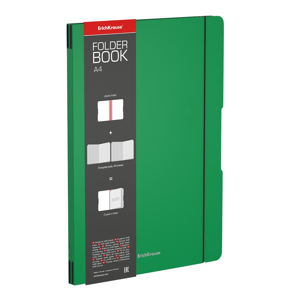 Тетрадь общая ученическая в съемной пластиковой обложке Erich Krause FolderBook Classic, зеленый, А4, 2x48 листов, клетка