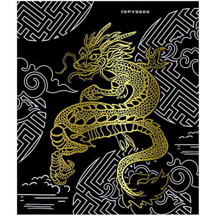 Тетрадь, А5, 48 л., в клетку, обложка - мелованный картон, блёстки, "Золотой дракон"