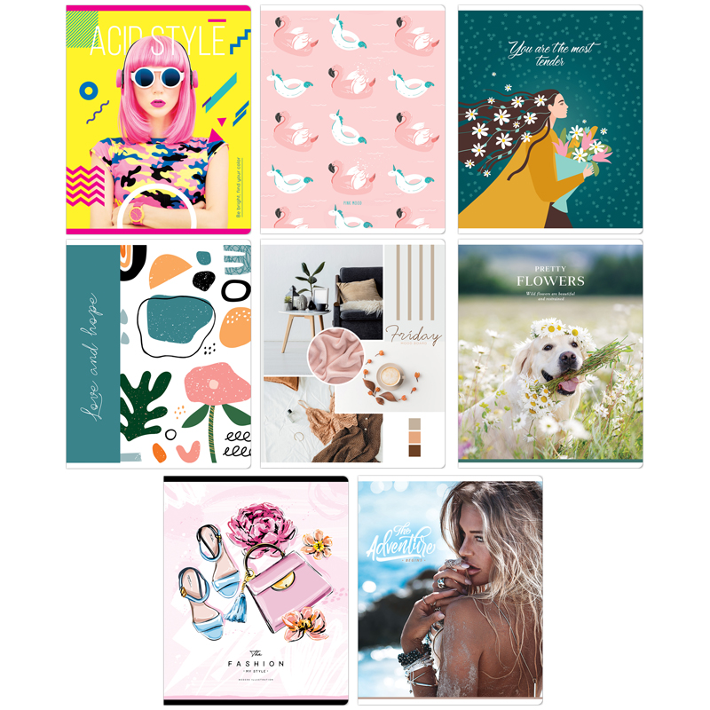 Тетрадь общая формата А5 (165*205 мм) на скобе, 48 листов. Внетренний блок - офсет 60 г/м2, белизна 100%, клетка с полями. Обложка изготовлена из импортного целлюлозного мелованного картона.