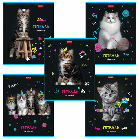 Тетрадь А5 48 л. HATBER скоба, клетка, глянцевая ламинация, "МУРчат Коты" (5 видов в спайке) 48Т5лВ1