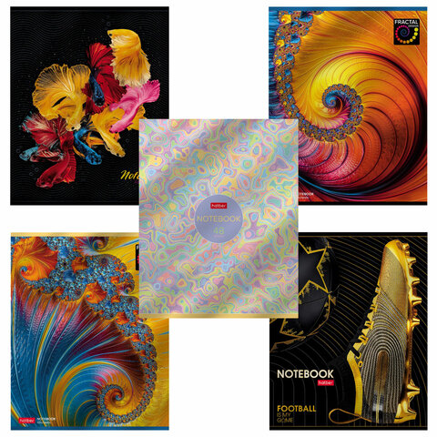 Тетрадь А5 48 л. HATBER скоба, клетка, металлизированный картон, "БЛЕСК" (5 видов в спайке) 48Т5мтлВ1