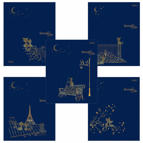 Тетрадь А5 48 листов HATBER скоба, клетка, матовая ламинация, 3D, "Romantic" (5 видов в спайке) 48Т5лофВ1