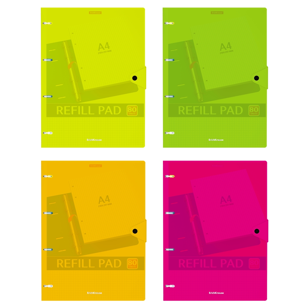 Тетрадь общая с пластиковой обложкой на кольцах Erich Krause Neon, ассорти, А4, 80 листов, клетка, на кнопке