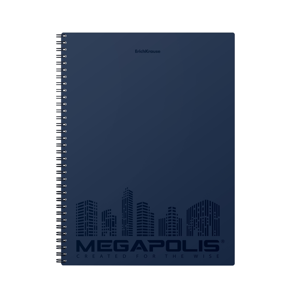 Тетрадь общая с пластиковой обложкой на спирали Erich Krause MEGAPOLIS, синий, А4, 80 листов, клетка, перфорация, микроперфорация