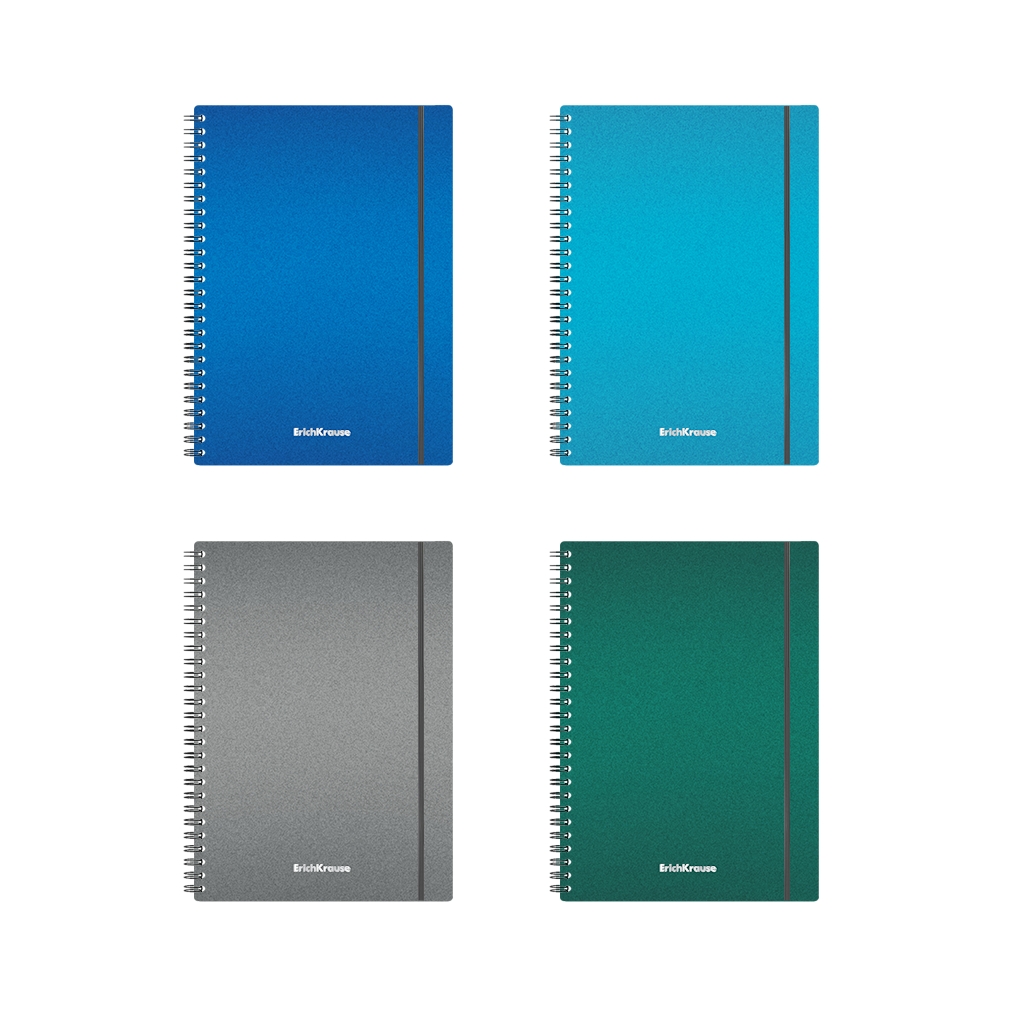 Тетрадь общая формата А5 (148х210 мм). Обложка из высококачественного износостойкого матового пластика с фактурой "песок". В блоке 80 листов в клетку. Бумага офсетная плотностью 55 г/м2. Цвет линовки - синий. Скругленные уголки обложки. Обложка фиксируется прочной эластичной резинкой. Тип скрепления - спираль. Тетради одного цвета упакованы в термоусадочную пленку по 4 штуки. Товар поставляется в нескольких вариантах цвета без возможности выбора.