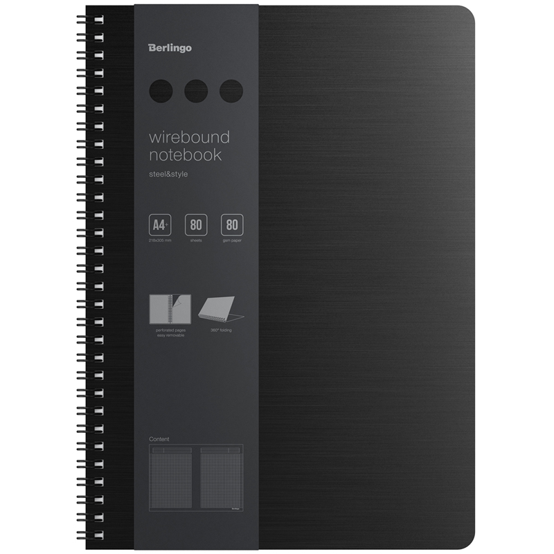 Бизнес-тетрадь А4+, 80л., Berlingo "Steel&Style", клетка, на гребне, 80г/м2, пластик (полифом) обложка, линейка-закладка, черная