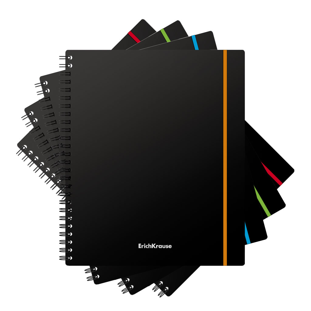 Тетрадь общая с пластиковой обложкой на спирали ErichKrause® Accent, ассорти, А5+, 80 листов, клетка, на резинке